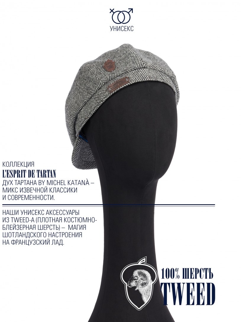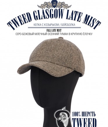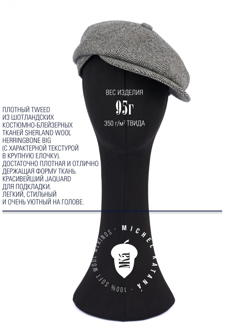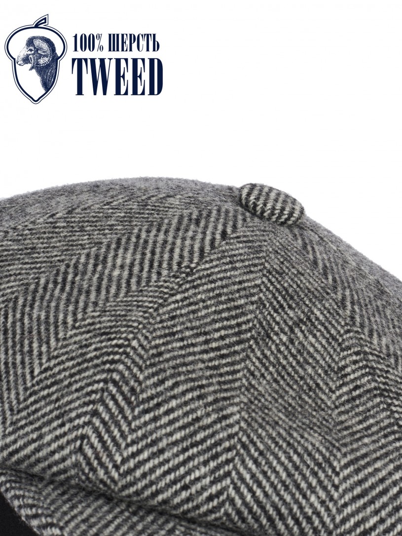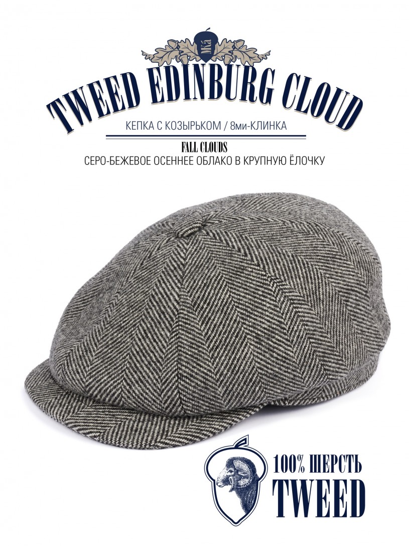 Кепка с козырьком, 8ми-клинка Мужская-Унисекс TWEED EDINBURG CLOUD из твида (Плотная Костюмно-Блейзерная ШЕРСТЬ)