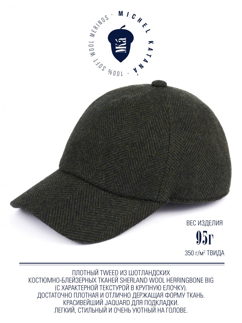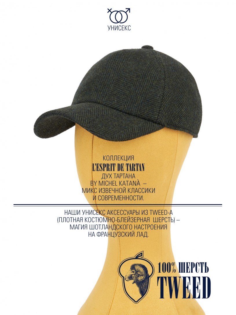 Кепка с козырьком, Бейсболка Мужская-Унисекс TWEED GLASGOW MOSS из твида (Плотная Костюмно-Блейзерная ШЕРСТЬ)