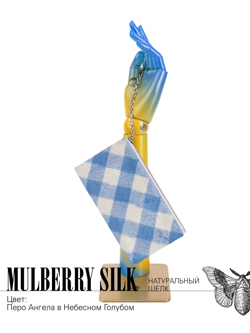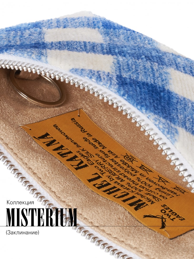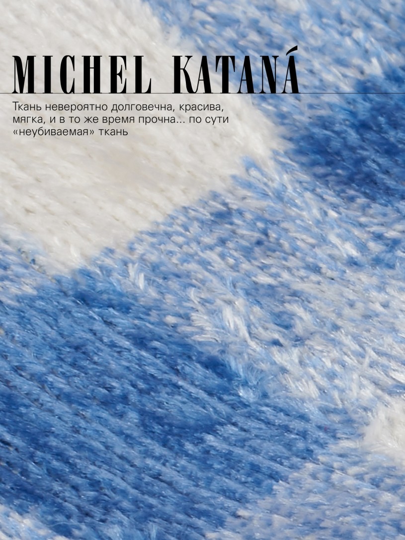 Натуральный шелк, сотканная вручную по традиционной и аутентичной технологии ручного ткачества в Ферганской долине Узбекистана (Маргилан) ткань Бахмаль. Из нитей шелка окрашенных также вручную натуральными красителями. Ткут ее именно крафтово, в домашних условиях на традиционных крафтовых ткацких станках. Нити шелка вотканы в структуру из нитей хлопка, в весовых пропорциях приблизительно 80/20% Шелк/Хлопок. Ткань невероятно долговечна, красива, мягка, и в то же время прочна... по сути "неубиваемая" ткань. Именно на перекрестке этого традиционного характерного, и эстетики дизайнерского восприятия от Michel Kataná и появилась эта коллекция сумок и аксессуаров к ним, на дальнейший пошив которых уходит еще не менее 72 часов работы мастеров для каждой.