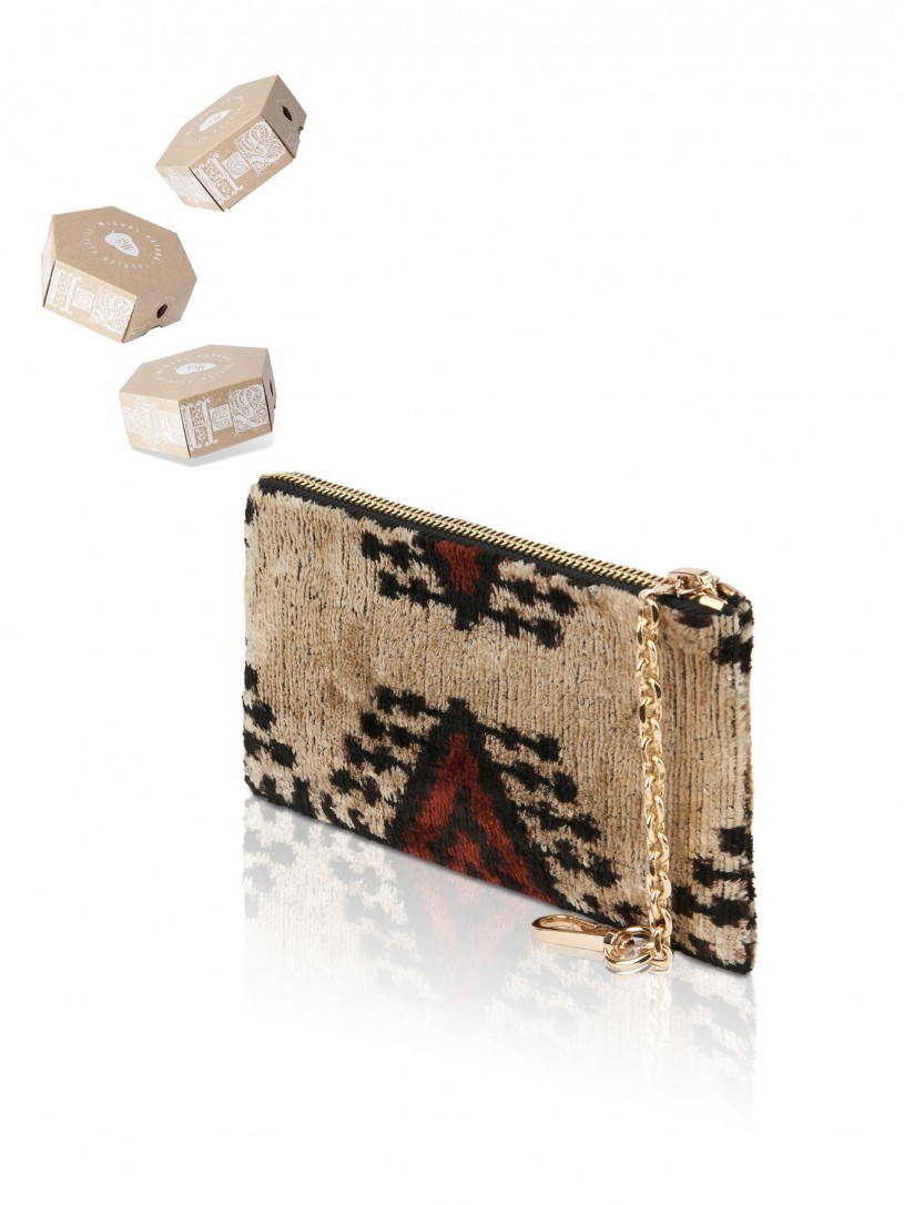 Натуральный шелк, сотканная вручную по традиционной и аутентичной технологии ручного ткачества в Ферганской долине Узбекистана (Маргилан) ткань Бахмаль. Из нитей шелка окрашенных также вручную натуральными красителями. Ткут ее именно крафтово, в домашних условиях на традиционных крафтовых ткацких станках. Нити шелка вотканы в структуру из нитей хлопка, в весовых пропорциях приблизительно 80/20% Шелк/Хлопок. Ткань невероятно долговечна, красива, мягка, и в то же время прочна... по сути "неубиваемая" ткань. Именно на перекрестке этого традиционного характерного, и эстетики дизайнерского восприятия от Michel Kataná и появилась эта коллекция сумок и аксессуаров к ним, на дальнейший пошив которых уходит еще не менее 72 часов работы мастеров для каждой.