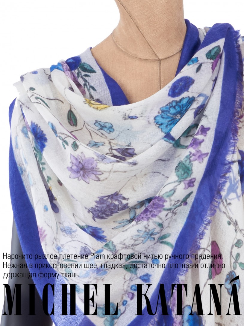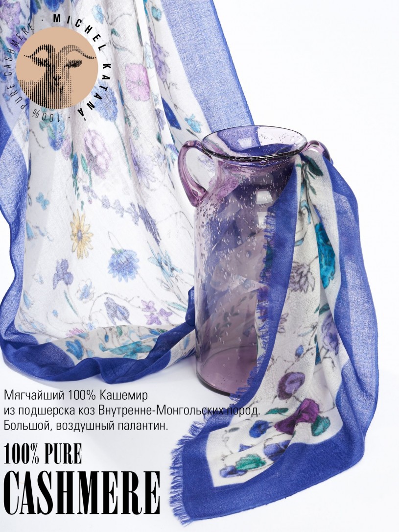 Мягчайший 100% Кашемир из подшерска коз Внутренне-Монгольских пород. Большой, воздушный палантин. Нарочито рыхлое плетение Plain крафтовой нитью ручного прядения. Нежная в прикосновении шее, гладкая, достаточно плотная и отлично держащая форму ткань. Вес изделия 65г (40 г/м2). Неравномерная толщина ручной пряжи, возможные утолщения и узелки, разрыхленность ячейчатой структуры плетения позволили создать невесомо-легкую полупрозрачную, отлично драпирующуюся мягкую ткань. Четкий в деталь рисунок вручную окрашенной пряжи кашемира позволило получить абсолютно одинаковую насыщенность между лицевой и оборотной поверхностями - все это отличительные изысканные черты линеек шарфов от Michel Kataná