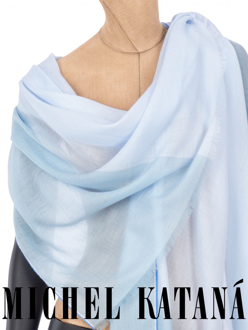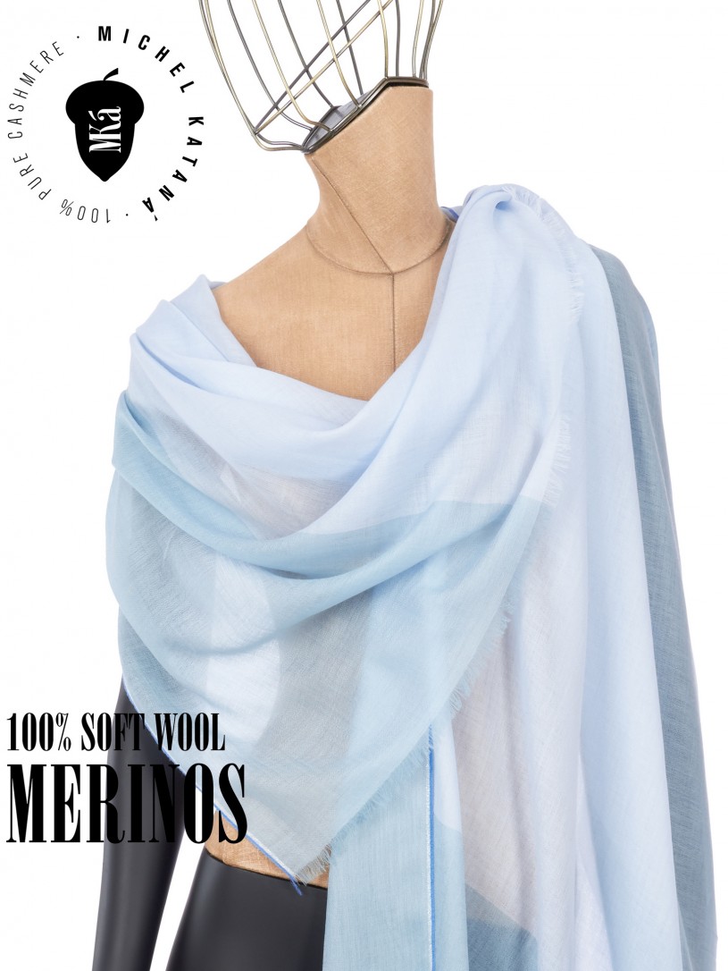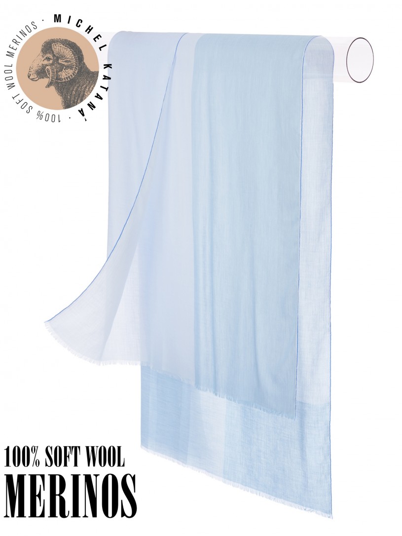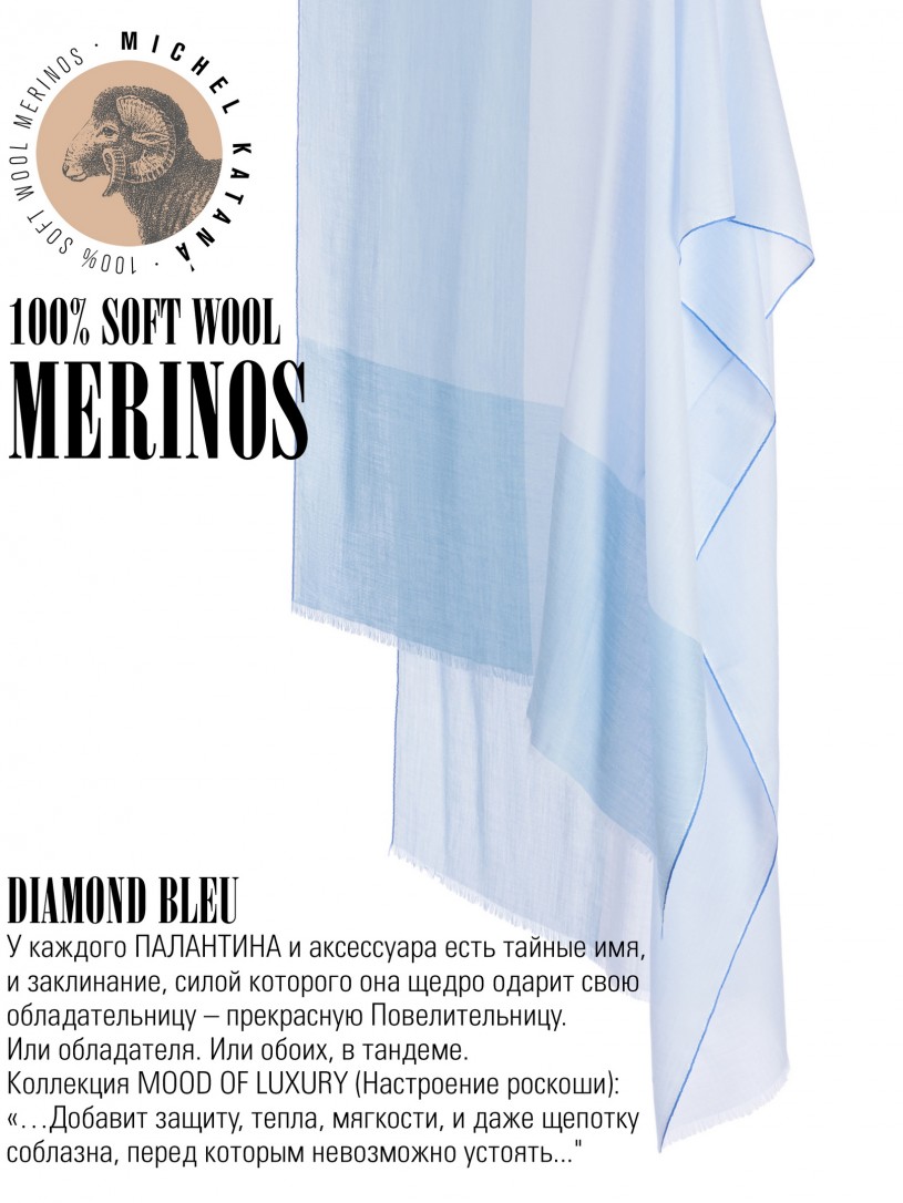Мягчайшая Шерсть MERINOS, ручная пряжа. Деликатное и некая разрыхленность полупрозрачного плетения TWILL с характерной текстурой. Нежная в прикосновении к шее, гладкая, отлично держащая форму ткань. Вес изделия 70г (40 г/м2). Небросский, но в то же время четкий в деталь рисунок нанесенный техникой PLAIN SCRREN PRINTING (трафаретная печать на столе), и некоторые модели в цифровой печати, позволили получить невероятную по текстуре ткань-вуаль с еле заметной насыщенностью между лицевой и оборотной поверхностями - все это отличительные изысканные черты линеек палантинов от Michel Kataná