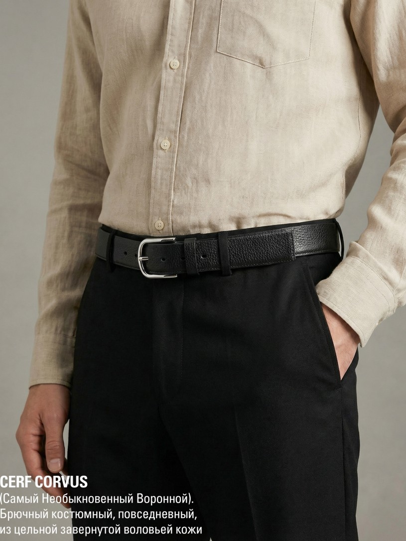 Добротный ремень шириной 35мм из шикарной линейки воловьих кож CERF с харАктерной и делликатнейшей текстурой кожи оленя.