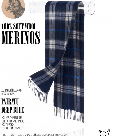 Мягчайшая шерсть Merinos, плетение Twill. 2-х сторонний рисунок, нежная в прикосновении шее, гладкая, достаточно плотная и отлично держащая форму ткань. Вес изделия 130г (240 г/м2). Крафтовая, вручную скрученная добротная бахрома. Цифровая техника нанесения красок позволила получить четкий в деталь рисунок и почти незаметное отличие насыщенности между лицевой и оборотной поверхностями - все это отличительные изысканные черты линеек шарфов от Michel Kataná
