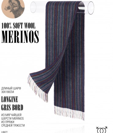 Мягчайшая шерсть Merinos, плетение Herringbone Small (с характерной текстурой в мелкую елочку). Нежная в прикосновении шее, гладкая, достаточно плотная и отлично держащая форму ткань. Вес изделия 120г (240 г/м2). Крафтовая, вручную скрученная добротная бахрома. Цифровая техника нанесения красок позволила получить четкий в деталь рисунок и почти незаметное отличие насыщенности между лицевой и оборотной поверхностями - все это отличительные изысканные черты линеек шарфов от Michel Kataná