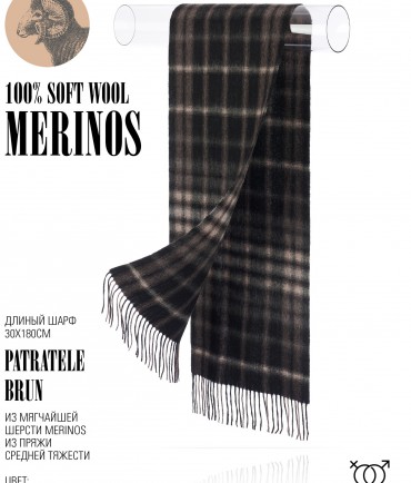 Палитра - вдохновление окрасом осенних деревьев, зовет-ведёт в лесную глушь. Легкие полосы переплетаются в теплой гамме бордового, словно нити времени, ткущие твои личные осенние воспоминания. С каждой бахромой, будто струящейся осенней листвой, этот шерстяной шарф обволакивает глубиной и теплом, открывает двери в мир загадок и тайн, оживает дух приключений.