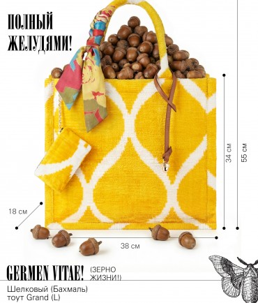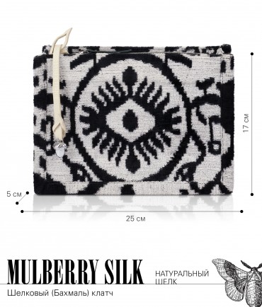 Натуральный шелк, сотканная вручную по традиционной и аутентичной технологии ручного ткачества в Ферганской долине Узбекистана (Маргилан) ткань Бахмаль. Из нитей шелка окрашенных также вручную натуральными красителями. Ткут ее именно крафтово, в домашних условиях на традиционных крафтовых ткацких станках. Нити шелка вотканы в структуру из нитей хлопка, в весовых пропорциях приблизительно 80/20% Шелк/Хлопок. Ткань невероятно долговечна, красива, мягка, и в то же время прочна... по сути "неубиваемая" ткань. Именно на перекрестке этого традиционного характерного, и эстетики дизайнерского восприятия от Michel Kataná и появилась эта коллекция сумок и аксессуаров к ним, на дальнейший пошив которых уходит еще не менее 72 часов работы мастеров для каждой.