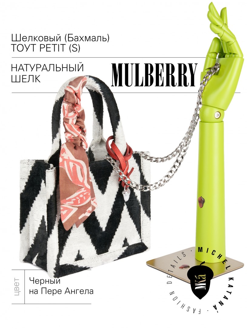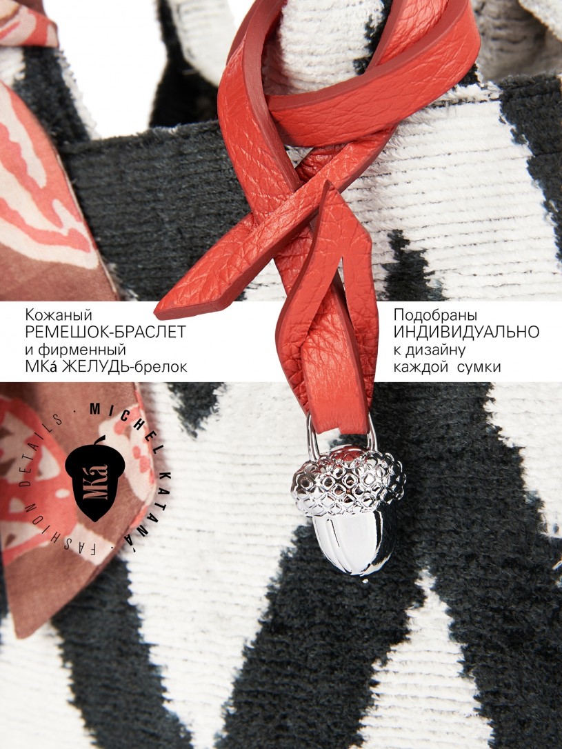 Высота ручек 36см. В комплектации: ремешок на плечо / наплечная цепочка (альтернатива ремешка) / кожаный ремешок-браслет (40 см) с фирменным MKá желудем-брелоком / фирменная лента из натурального шелка PETIT LUXE 5,5x95cm.