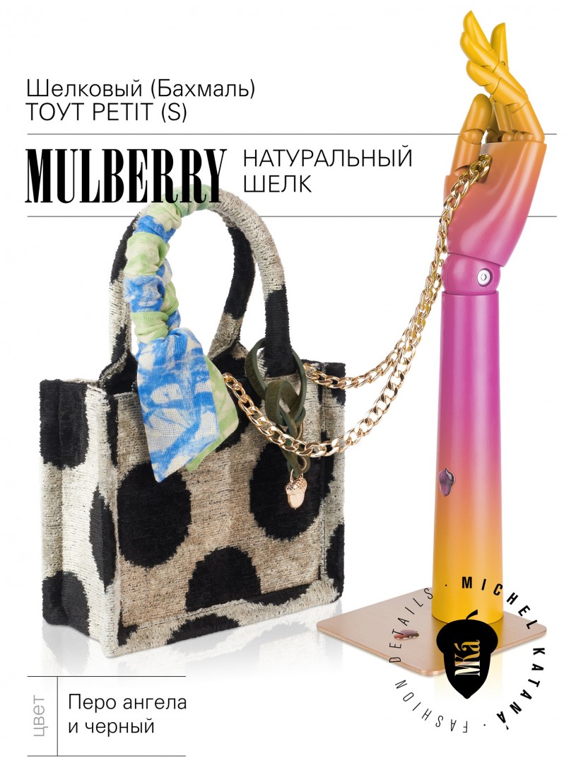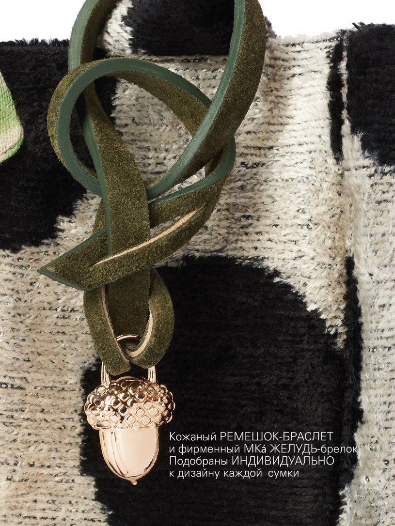 Высота ручек 36см. В комплектации: ремешок на плечо / наплечная цепочка (альтернатива ремешка) / кожаный ремешок-браслет (40 см) с фирменным MKá желудем-брелоком / фирменная лента из натурального шелка PETIT LUXE 5,5x95cm.
