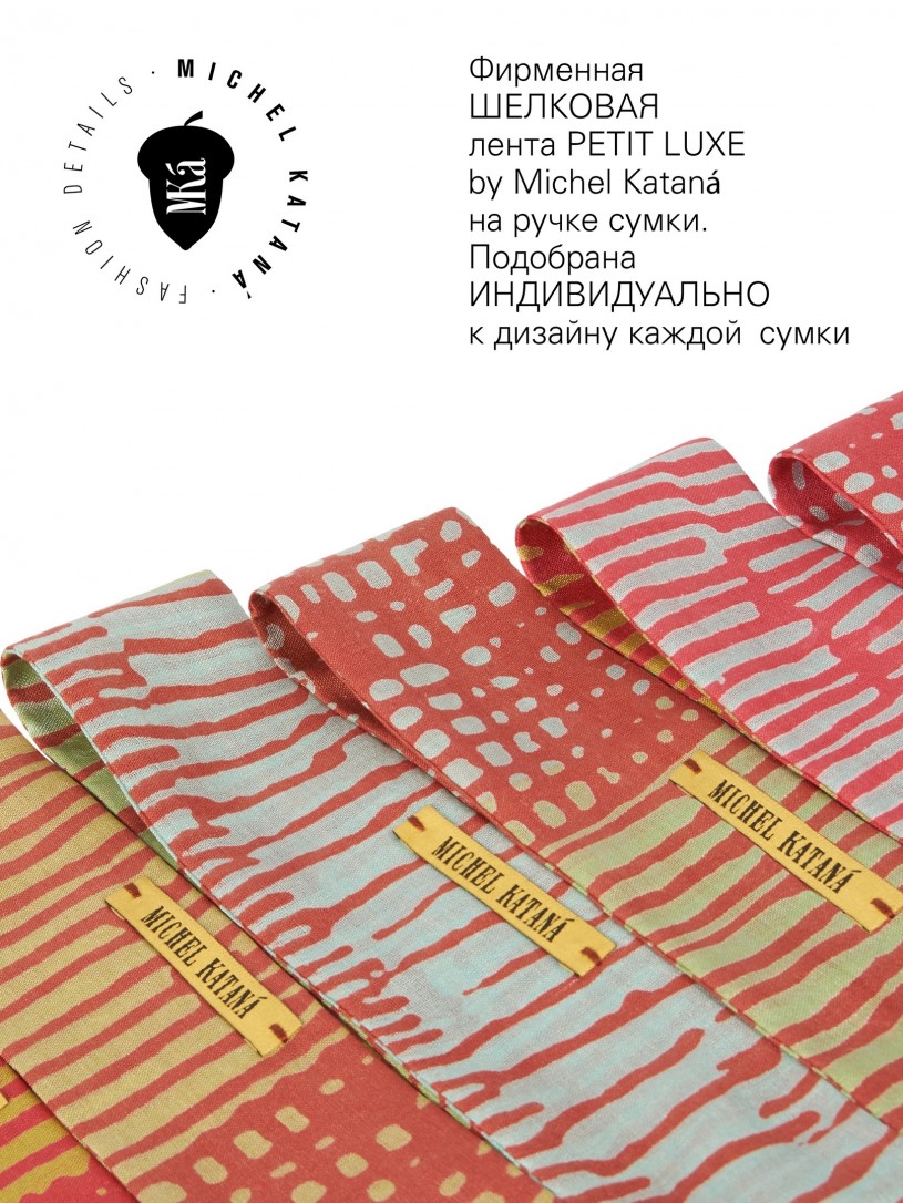 Высота ручек 36см. В комплектации: ремешок на плечо / наплечная цепочка (альтернатива ремешка) / кожаный ремешок-браслет (40 см) с фирменным MKá желудем-брелоком / фирменная лента из натурального шелка PETIT LUXE 5,5x95cm.