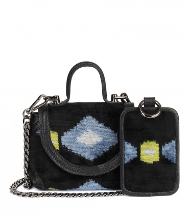Натуральный шелк, сотканная вручную по традиционной и аутентичной технологии ручного ткачества в Ферганской долине Узбекистана (Маргилан) ткань Бахмаль. Из нитей шелка окрашенных также вручную натуральными красителями. Ткут ее именно крафтово, в домашних условиях на традиционных крафтовых ткацких станках. Нити шелка вотканы в структуру из нитей хлопка, в весовых пропорциях приблизительно 80/20% Шелк/Хлопок. Ткань невероятно долговечна, красива, мягка, и в то же время прочна... по сути "неубиваемая" ткань. Именно на перекрестке этого традиционного характерного, и эстетики дизайнерского восприятия от Michel Kataná и появилась эта коллекция сумок и аксессуаров к ним, на дальнейший пошив которых уходит еще не менее 72 часов работы мастеров для каждой.